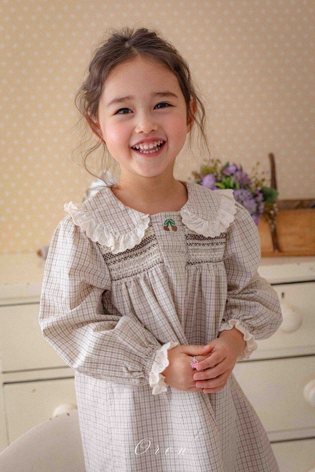 【OREN】(Kids) Cherry Smocked Dress