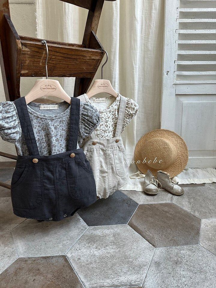 【monbebe】リネンサスペンダーショーツ