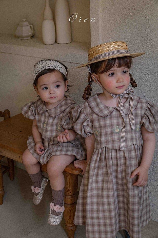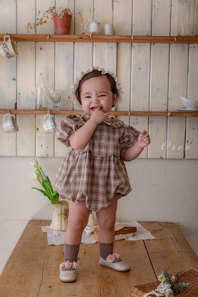 【OREN】(baby)トゥア 刺繍チェック ロンパース